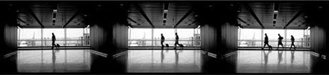 Ab 4. April 2004 zeigt die aplanat Galerie für Fotografie Werke des 1944 in Paris geborenen Fotografen Serge Marcel Martinot. Unter dem Titel un-deux-trois werden Dreier-Sequenzen präsentiert, die vorwiegend in Frankreich, Deutschland und USA entstanden sind. Seit über 20 Jahren arbeitet Martinot nach dem Prinzip der Serie und hält so flüchtige, aber meist vertraute Momente des alltäglichen Lebens fest. Egal ob Karussell, Boot oder Fensterausschnitt, durch minimale zeitliche oder perspektivischen Verschiebungen innerhalb einer Sequenz erscheinen die Motive in neuem, ungewohnten Licht, öffnen sich für den Betrachter bisher verborgene Seiten des Dargestellten. So erschließen sich Martinots Werke selten auf den ersten Blick, vielmehr braucht man 'Zeit zum Betrachten', so der Fotograf. Es entstehen meist kleine, fast filmische Sequenzen, die eine Geschichte erzählen können und die einladen diese 'eingefrorenen' Momente genauer zu betrachten. Die drei Einzelaufnahmen ergeben ein Gesamtwerk, werden durch das subjektive Betrachten verdichtet, zeigen eine "Animation auf dem Papier". Zu Martinots Prinzipien gehört die Reihenfolge der Aufnahme nicht zu ändern, oder gar Eine aus der Sequenz zu entfernen. Ebenso verzichtet er auf eine technische Bearbeitung und Retuschierung der Bilder. Diese selbst aufgestellten Regeln einzuhalten macht für ihn den Reiz aus, machte den Unterschied zu Zusammenschnippseln oder den, sonst üblichen, mehreren Versuchen mit Statisten oder Modellen aus. Martinot bezeichnet sich als Strassenfotograf, macht seine Aufnahmen ohne Stativ und abhängig von den zufällig beobachteten Situationen. So ergeben sich, sogar an Flughäfen, Rolltreppen oder Strassenkreuzungen, teilweise poetische Motive, die eine, meist als typisch französisch bezeichnete, Melancholie zeigen. Martinot zeigt gern das 'nicht-ganz-perfekte' des menschlichen Lebens, Situationen welche die Beteiligten oftmals nicht einmal bewusst wahrnehmen.