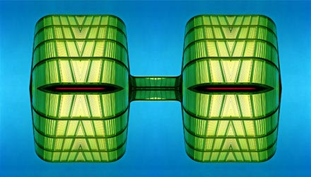 Gebäude und -komplexe sind entstanden, kleine futuristisch anmutende Stadtinseln, autarke Lebensräume. Andere Bauten rekonstruiert er bewusst als objektartige Gebilde, reduziert auf Form, Farbe, Licht und Schatten.